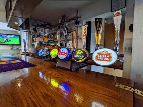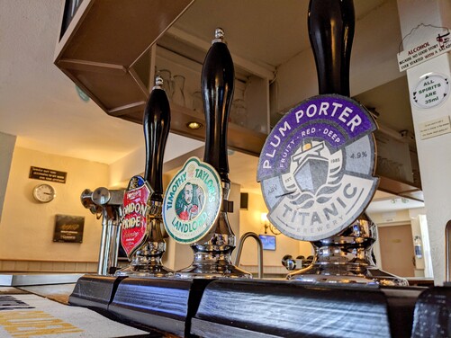 Serving a selection of Ales, Lagers, Ciders, Spirits and Snacks. Inside you'll find two log fires, three large Flat-screen TV's, a jukebox and a dart board. We also have covered and uncovered outside seating in our beer garden.